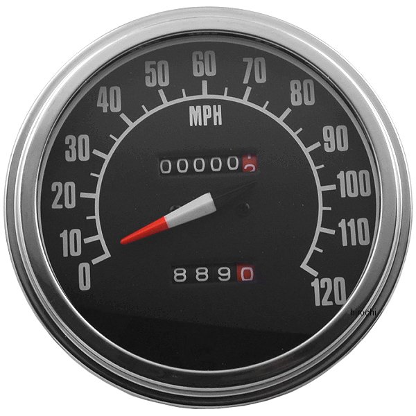 80年-83年 ハーレー FXWG Wide Glide 80年 ハーレー FLHS Electra Glide Sport 79年 ハーレー FLH 71年-72年 ハーレー FX Super Glide 70年-78年、80年 ハーレー FLHElectra Glide 65年-80年 ハーレー FL 65年-69年、78年-80年 ハーレー FLH 62年-64年 ハーレー FLHDuo-Glide 62年-64年 ハーレー FL ・5/8"-18スレッド。・リセットノブが含まれます。・120mph。※速度計ではマイレージをリセットできません。・製品名:ゲージ。・タイプ:機械式速度計。・スタイル:62年-67年スタイル。・フェイスカラー:ブラック。・ベゼルカラー/仕上げ:ポリッシュ。・形状:ラウンド。・外径:5インチ(127mm)。・キャリブレーション:0 mph-120 mph。・スピードメーター比:1:1