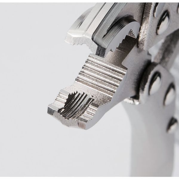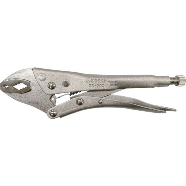 ・ねじ頭をつかんだ後、固定できるロック付です。・トラスねじにも対応した新設計のたて溝です。・くわえ部はすべて独自設計のダイヤ型とし、計3カ所のくわえ部で、3点支持で確実につかみます。・頭部取付角度を水平にしたことにより、振り幅が狭くなり回しやすくなりました。・口幅調節ねじには六角穴付ボルトを採用しています。六角棒レンチ(8mm)で増し締めが可能です。・従来のバイスプライヤーとしても使えます。・ドライバーで外せなくなった、つぶれたねじ、サビついたねじ及び、特殊なねじ等の取り外しに。・ダイヤ型のくわえ部は、パイプ等、丸物のクランプに。・全長(mm):215・厚さ(mm):9・先端長さ(mm):45・適合ねじ:M2~M5(トラスねじ)、M1.6~M8(なべねじ)、3~13mm(六角ねじ)・使用範囲:M2~M5(トラスねじ)、M1.6~M8(なべねじ)、3~13mm(六角ねじ)・寸法(mm):A=215/B=58/E=11・頭部:炭素鋼(S58C)・絶対に電気を通さないで下さい。非絶縁工具です。・ハンマー代わりに使用しないでください。・ハンドルロック解除の際、解除レバーで手などを挟まないように気を付けて下さい。・使用範囲をこえての使用はしないで下さい。・生産国 日本・JANコード 4960225800235・質量 430g・コード:123-2877 ・品目:DS200T