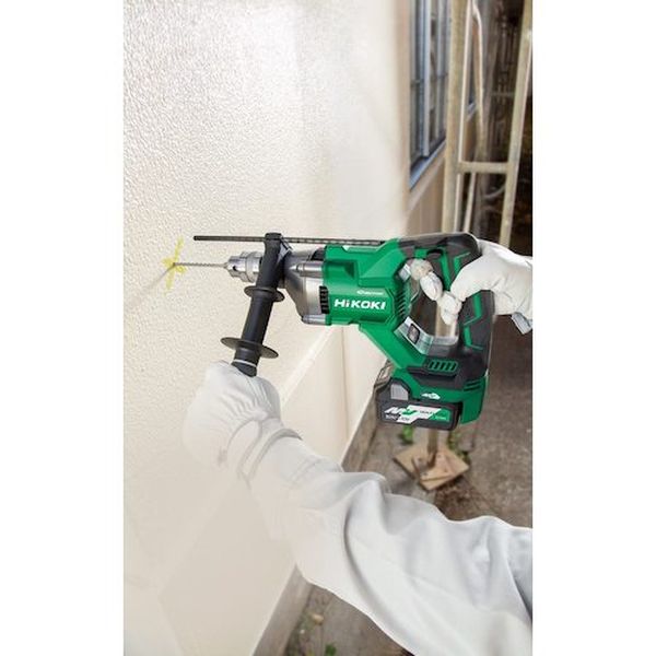 ・マルチボルト36V電池パック対応製品です。・押し付けやすいD形ハンドルとコードレスで快適作業ができます。・電子クラッチを採用したことで、一定負荷をかけても作業が止まりにくく作業効率が上がります。・リアクティブフォースコントロール機能(RFC)搭載で安全性が高まりました。・大形フックが付いているので、作業の合間に吊り下げておけます。・コンクリート、レンガ、石材などの穴あけに。・各種金属、木材、プラスチックなどへの穴あけに。・木材の座掘りに。・コアビット使用による各種穴あけ(回転モードのみ)、鉄筋コンクリート、ALC、断熱材入り複合壁、窯業・金属系サイディング、モルタルのコア穴あけに。・無負荷回転数(min[[の-1乗]])高速:0~1400・無負荷回転数(min[[の-1乗]])低速:0~1000・無負荷打撃数(min[[の-1乗]])高速:0~18200・無負荷打撃数(min[[の-1乗]])低速:0~13000・能力(mm):コンクリート20、鉄工13、木工40、座掘り65、スーパーダイヤコア120、ハイパーダイヤコア160、スーパーウッドガルバコア160、スーパーウッドコア200・ドリルチャックmm:把握径1.5~13・機体寸法mm(全長×高さ×幅):344×247×97・1充電当たりの作業量(目安):モルタル穴あけ(深さ30mm、錐径5.3mm回転+打撃、高速モード時)約150個・ボディ:樹脂・サイドハンドル・デプスゲージ・チャックハンドル・日立工機(株)のブランドは、2018年10月「HiKOKI」に変わりました。・電池パック・充電器・ケースは別売です。・ビット別売りです。・生産国 中国・JANコード 4966376336609・質量 2.500kg・コード:257-2250 ・品目:DV3620DANN