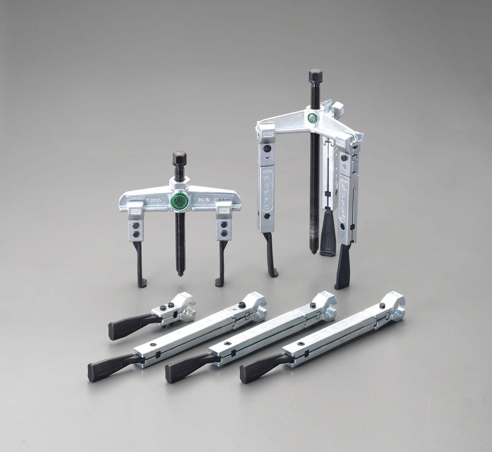 【セット内容】適合径:内掛:120から130mm、外掛:70から180mmアーム長さ:100mm、200mm、250mm、350mm爪の厚み:4.0mm重量:8.40kg材質:ドイツ鋼製ケースサイズ:440(W)X355(D)X155(H)mm2本爪3本爪プーラーセット(アーム3種X各3本)プーラーボルト(M14X1.5、ねじ長:250mm、六角対辺:17mm)超薄爪タイプ狭い場所での使用に最適です。プーリーやギアホイール、ボールベアリングなど強力且つ傷めることなく引き抜けます。000012237312 HD