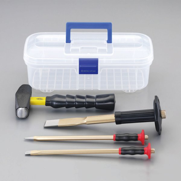 【セット内容】5点セットEA572DC-3(電工チゼル)X1EA572DC-12(電工ポイントチゼル)X1EA572DH-11(スリットチゼル)X1EA575BD-2(両頭ハンマー)X1EA505AB-1(工具箱)X1チゼル仕様材質:クロムバナジウム鋼全長:300mm、刃幅:12mm全長:300mm、刃幅:10mm全長:300mm、刃幅:30mm両頭ハンマーファイバーグラス柄ゴムグリップ付全長:250mm頭径:27mm頭重量:900g工具箱仕様サイズ:347X167X119(H)mm材質:高耐衝撃性コーポリマー重量:400g仕様:中皿なしカラー:クリアー
