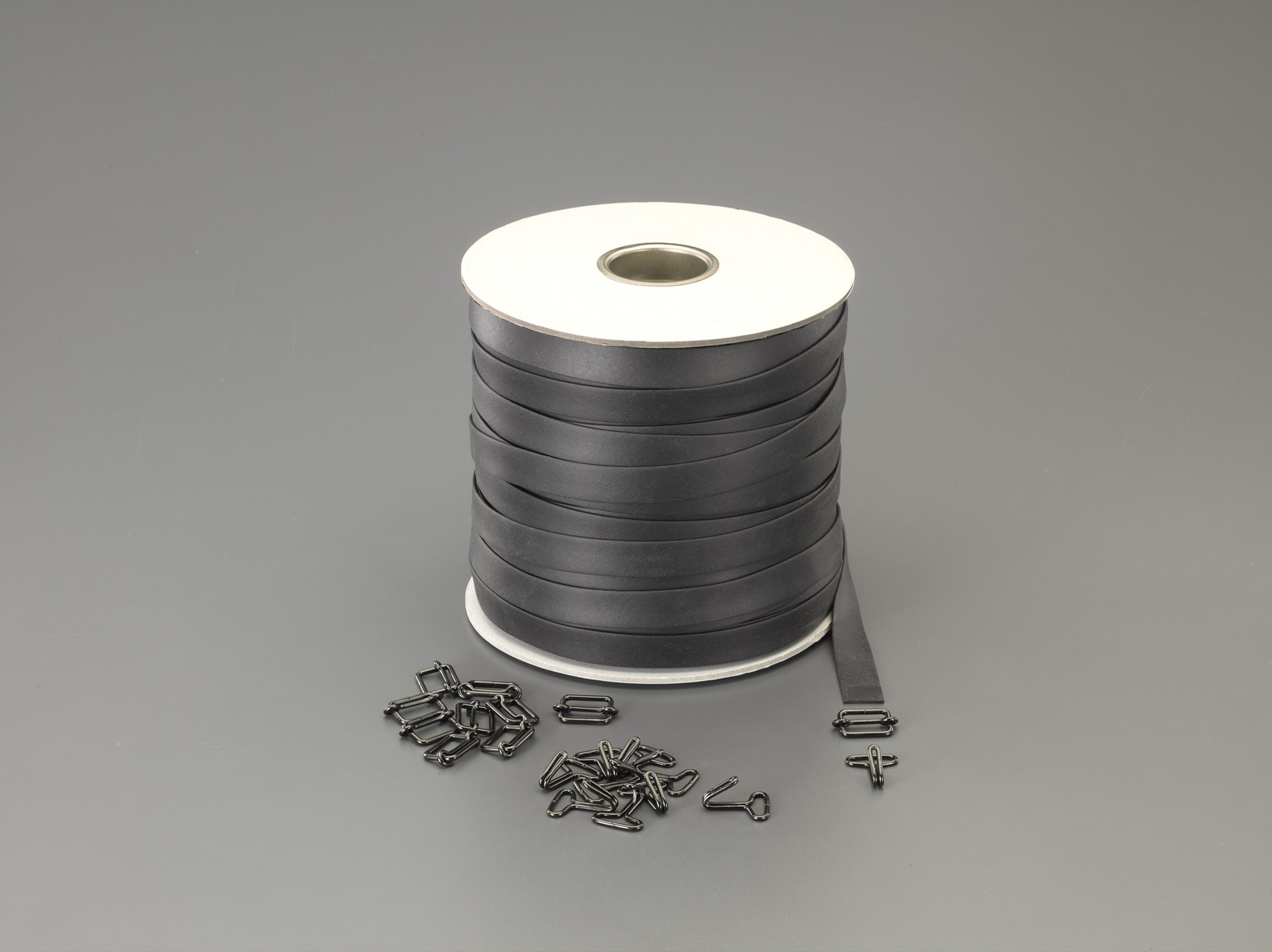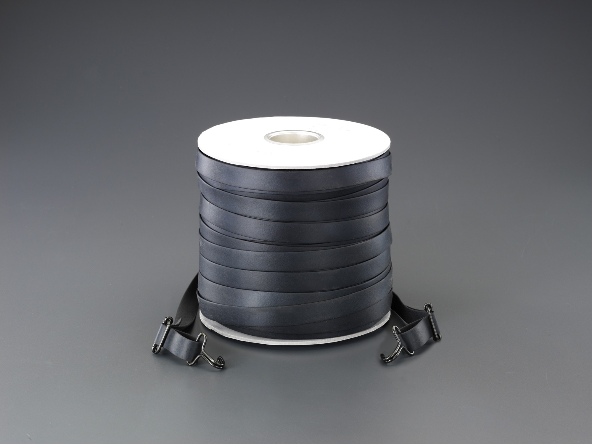 ●サイズ:20(W)mm×2(T)mm×100(L)m●材質:合成ゴム※先端金具10組付●フック内径:11mm遊動止金具によって長さの調整ができます。