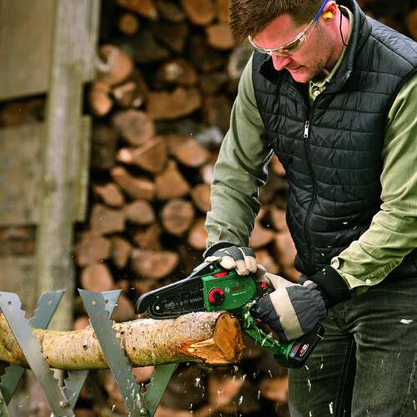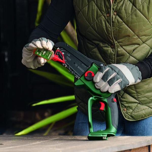 ・150mmのガイドバー採用により幅広い切断作業に対応します。・コンパクトなので持ち運びもラクラクです。・チェーンとガイドバーは簡単に取り付けが可能、チェーンのテンション調整もツールいらずで手間なくカンタンです。・付属のチェーンテンション調整ガイドで最適な張り具合に。・不意の動作を防ぐ2ステップスイッチで、安全な作業を実現します。・パワフルLi-ion18V対応です。・ブラシレスモーターを採用しています。・3段階のバッテリー残量表示ランプでバッテリー残量の確認ができます。・木の枝・幹の切断、剪定・ガイドバー長さ(mm):150・ソーチェーン:325''-80BX・長さ(mm):385・幅(mm):102・高さ(mm):259・充電時間(分):約40(空→80%ターボ充電)、約60(空→フル充電)・電圧(V):18・容量(Ah):2.5・最大切断径(mm):130・チェーンスピード: 6.95m/秒・適用チェーンタイプ:325''-80BX・ドライブリンク厚さ:1.1mm(0.043インチ)・1充電あたりの作業量目安:ひば材50mm×約160本(2.5Ahバッテリー使用時)・ポリアミド樹脂(PA)・2.5Ahバッテリー(A1825LIG)×1個・充電器(AL1830CV)・チェーン(本体装着固定済)・オイル(50ml)・チェーンカバー・チェーンバー・チェーンテンション調整リング・生産国 ハンガリー・JANコード 4969655810135・質量 1.300kg・コード:661-0532 ・品目:ECHAIN18V157