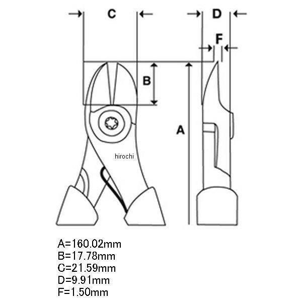 特殊用途プラスチック/ケーブルカッターです。長さ(A):6.3インチジョウ長さ(B):0.7インチヘッド幅(C):0.85インチヘッド 厚さ(D):0.39インチヒント厚さ(F):0.059インチ※商品お届け時期につきまして、通常は一か月半前後となっておりますが仕入れ先の出荷状況により、お時間を頂戴する場合がございます。※商品手配後に、供給不可となる場合がございます。あらかじめご了承のうえご注文ください。