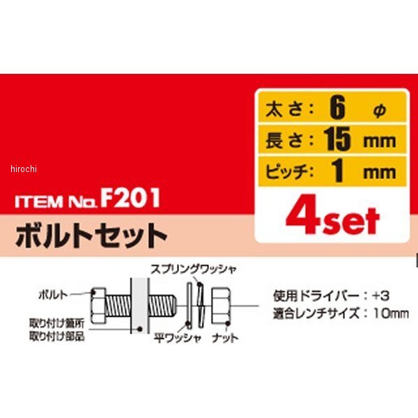 エーモン ボルトセット・スプリングワッシャ・平ワッシャ付で作業がしやすい(仕様)・サイズ :6φ×15mm ピッチ1mm・ブラック(内容物)・ボルトセット:4セット