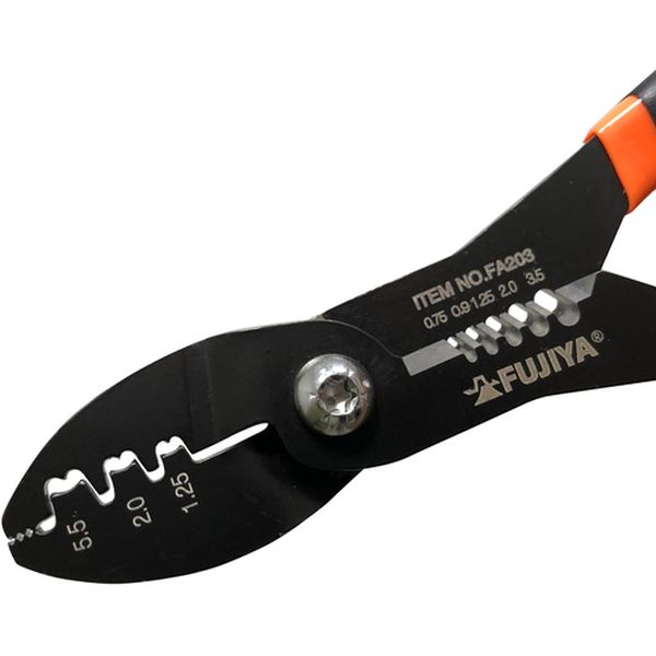 ・配線作業に必要な、切る・剥く・圧着の3つの機能を軽量・コンパクトにサイズにまとめました。・サイズを約2/3に、重さを約1/2にしました。・製造時の使用電力の20%を太陽光発電で賄っています。・機械・自動車・電気機器の整備などの配線作業に最適です。・全長(mm):180・圧着端子:ファストン端子・圧着範囲:1.25/2.0/5.5mm[[の2乗]]・適合電線([[MM2]]):0.75/0.9/1.25/2.0/3.5・適合端子:ファストン端子・ファストン端子用・特殊鋼・本来の目的以外では使用しないでください。・作業時は周り安全を確かめてご使用ください。・保護メガネ等を着用して作業してください。・能力以上の使用はしないで下さい。・生産国 台湾・JANコード 4952520067314・質量 164g・コード:183-3917 ・品目:FA203