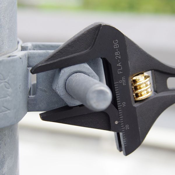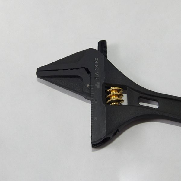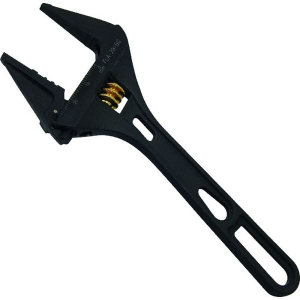 ・軽量・薄型タイプかつワイドな開口により、狭い場所でさまざまなサイズのボルトを回すのに最適です。・0mmまで閉じるので、小さいものまでしっかりとつかめます。・目盛付です。・でっぱりが少なく狭い場所でも使いやすくなっています。・ボルトやナットの角を傷つけにくい独自形状です。・ボルト・ナットの締め緩めに最適です。・水道管、ガス管等への継手の取り付け・取り外しに最適です。・色:黒/金・全長(mm):155・最大口開き(mm):28・黒金タイプ・目盛付・特殊鋼・表面処理:パーカー処理・本来の目的以外では使用しないでください。・作業時は周り安全を確かめてご使用ください。・保護メガネ等を着用して作業してください。・必ず下アゴ側へ力をかけてください。・パイプ等を利用しての使用はしないでください。・生産国 台湾・JANコード 4952520852200・質量 114g・コード:195-0100 ・品目:FLA28BG