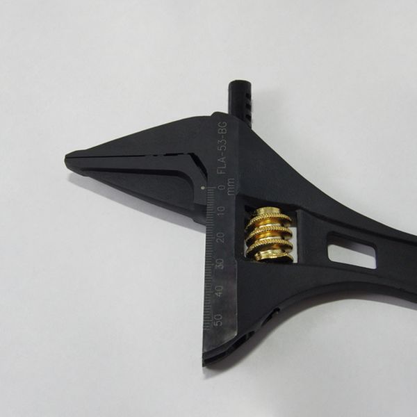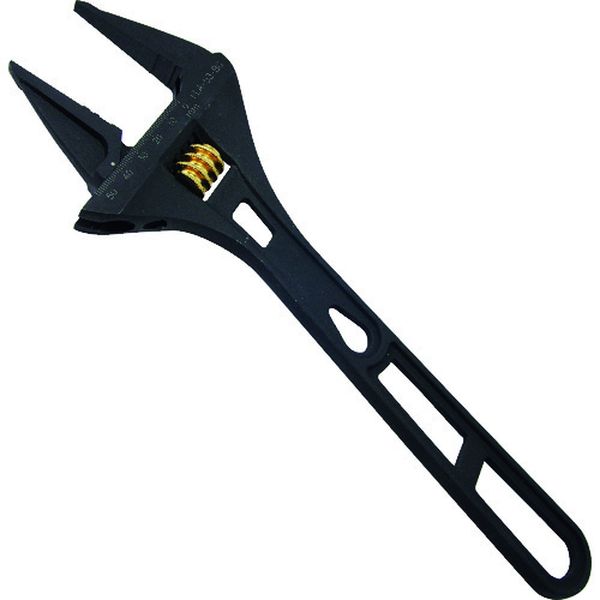 ・軽量・薄型タイプかつワイドな開口です。・狭い場所でさまざまなサイズのボルトを回すのに最適です。・0mmまで閉じるので、小さいものまでしっかりとつかめます。・目盛付です。・でっぱりが少なく狭い場所でも使いやすくなっています。・ボルトやナットの角を傷つけにくい独自形状です。・ボルト・ナットの締め緩めに最適です。・水道管、ガス管等への継手の取り付け・取り外しに最適です。・色:黒/金・全長(mm):306・最大口開き(mm):53・薄型、軽量仕様です。・目盛付きです。・特殊鋼・本来の目的以外では使用しないでください。・作業時は周り安全を確かめてご使用ください。・保護メガネ等を着用して作業してください。・必ず下アゴ側へ力をかけてください。・パイプ等を利用しての使用はしないでください。・生産国 台湾・JANコード 4952520852231・質量 490g・コード:195-0101 ・品目:FLA53BG
