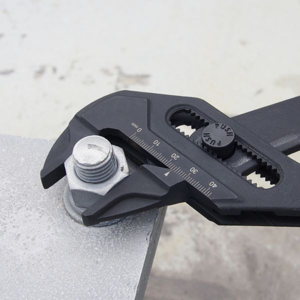 ・掴み面が平行に動き、力を掛けて挟み込む構造なので微調整が不要です。・ガタが少なくボルトやナットに傷を付ける心配がありません。・テコの原理でガッチリ掴むことが可能です。・ボルト・ナットの締め緩めに。・水道管、ガス管等への継手の取り付け・取り外しに。・最大口開き(mm):45・全長(mm):263.5・調整(段階):19・先端厚さ(mm):8.0・色:黒/金・掴み面ギザなし・プッシュ式調整機能・本体:特殊鋼・グリップ:樹脂・使用時には必ず保護具等を着用の上、ご使用ください。・ボルト・ナット等の二面幅を合わせてご使用ください。・柄にパイプ等を差し込んでの使用はしないでください。・ハンマー等で叩いて使用しないでください。・工具の使用目的以外で使用しないでください。・生産国 台湾・JANコード 4952520852309・質量 522g・コード:195-0099 ・品目:FLM45BG