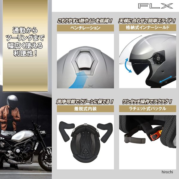 リード工業 ジェットヘルメット インナーシール付きサイズ:Lカラー:マットブラック全排気量対応【仕様説明】エッジの効いたシャープなデザインのインナーシールド付きジェットヘルメット前頭部に大型エアベンチレーションを装備することにより走行風を取り込み、ヘルメット内部にこもる熱やムレを低減ラチェット式開閉シールドでお好みの位置に調節が可能。【規格】SG/PSC【届出事業者】株式会社リード工業【検査機関】一般財団法人製品安全協会