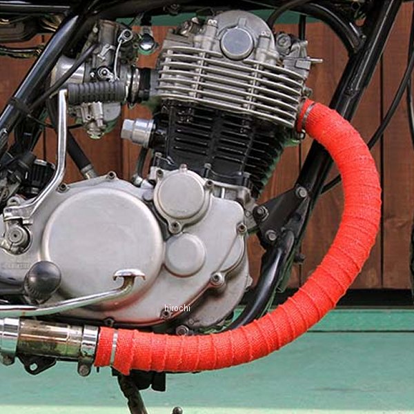 GOODS グッズ マフラーバンテージ汎用カラー:レッド材質:バンテージ:グラスファイバー バンド:ステンレスサイズ:全長:約5M 幅:約51mm 厚み:約1.8mm内容物:バンテージ×1 SUSバンド×2【仕様説明】グラスファイバー製用耐熱バンテージ。主にエキパイに巻き付けての断熱に使用。アップマフラーのマフラーガード代わり、エキパイ周辺部品の保護、見た目も荒々しくなりドレスアップ効果も。また排気温度を高温に保ち排気流速を高める効果により、若干ながら高回転よりになると言われています。ノンアスベスト。黒、赤は高温部は色が抜けてきますので、経年変化をお楽しみ頂くか、2重に巻くことで色落ちを抑える効果があります。 装着参考記事 httP:www.goods-co.netuser_dAtAdiy029.PhP