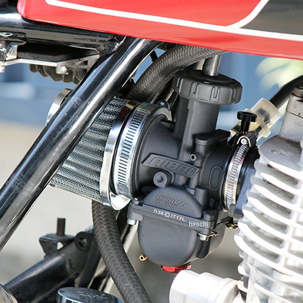 GOODS グッズ NIBBI PWK38 キャブレターキットSR500、SR400カラー:ブラックアルマイトレッドアルマイト材質:キャブ:アルミ マニホールド:ゴムサイズ:エンジン側外径:Φ45.8mm 吸入側外径:Φ63mm 前後長さ:90.7mm 上下高さ(ゴム含まず):169.4mm内容物:キャブ本体、マニホールド、バンド、フューエルホース、ドレーンホース1、ワッシャー、カラー、ドレーンホース2×2【仕様説明】NIBBI社製PEタイプキャブレター。正規品。PWKタイプは半月形ピストンでインポートは鏡面に近い超精密仕上げで流速を高めます。純正スロットル対応で、別売りの専用ワイヤー(G9-01603、G9-01604、G9-01605)が必要。初期設定は、メインジェット#132、パイロットジェット#40でKEIHIN、PE、PWKタイプが使用可能。