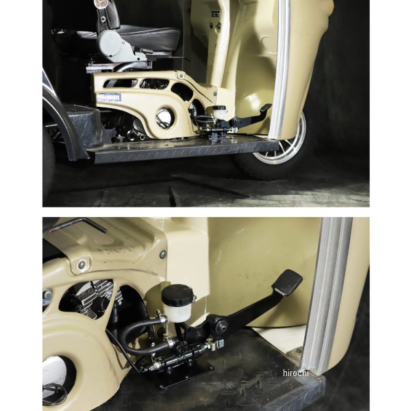 GOODS グッズ フットブレーキキットAPtrikes125カラー:ブラック材質:ステー、ペダル:スチール リザーバータンク:樹脂サイズ:取り付け全長:約320mm 取り付け全幅:約120mm 取り付け全高:約140mm内容物:ステー、ブレーキペダル、マスター、リザーバータンク、リザーバータンクホース、ホースバンド、取付ボルト一式×各1【仕様説明】APtrikes125用のフットブレーキKIT。ドリルビスにてフロアボードに固定。マスターはHONDA純正を採用。ブレーキホース、バンジョーボルトは純正を使用。