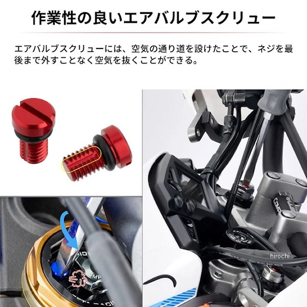 ジータ ZETA フロントフォークトップキャップ05年-20年 ヤマハ SEROW25006年-17年 ヤマハ XT250X20年-25年 カワサキ KLX23022年-25年 カワサキ KLX230S20年-25年 カワサキ KLX230R22年-25年 カワサキ KLX230R Sカラー:フォークトップキャップ:ブラック、エアバルブスクリュー:レッド調整範囲:-5~+10mm素材:アルミニウム合金表面処理:アルマイト処理内容:トップキャップ×2個、スペーサー×2個、ワッシャー×2個フロントスプリングの反力を調整できるイニシャルアジャスター付きトップキャップ。プリロードをかけることで、フロント周りのカッチリ感が増し、ブレーキングからコーナリングの安定性が向上する。ツーリングなどでの荷物を積んだ際にも効果を発揮。また、エアバルブスクリューを装備したことで、フォーク内の圧力を大気圧にリセットすることができる。リセットの作業は、メンテナンススタンドで車体を浮かし、フォークが伸びきった状態で行ってください。