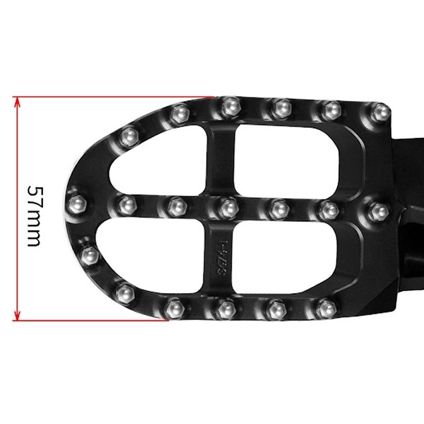 ジータ ZETA アルミフットペグ24年-25年 ヤマハ YZ250F23年-25年 ヤマハ YZ450F25年 ヤマハ YZ250FX24年-25年 ヤマハ YZ450FX25年 ヤマハ WR250F24年-25年 ヤマハ WR450Fカラー:ブラック鍛造 A2014材をCNC加工によって細部まで削り出したアルミ製高強度フットペグ。足が抜き差ししやすい前後非対称のデザインを採用。前後幅 57mmのワイドタイプとすることで安定したライディングを実現。複数配置したステンレスピンによって、より良いフットペグトラクションとコントロール性を提供。各車両にあわせたカラーアルマイト仕上げは、ヴィジュアルの向上やドレスアップ効果も高い。