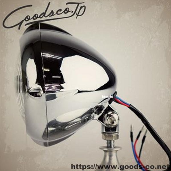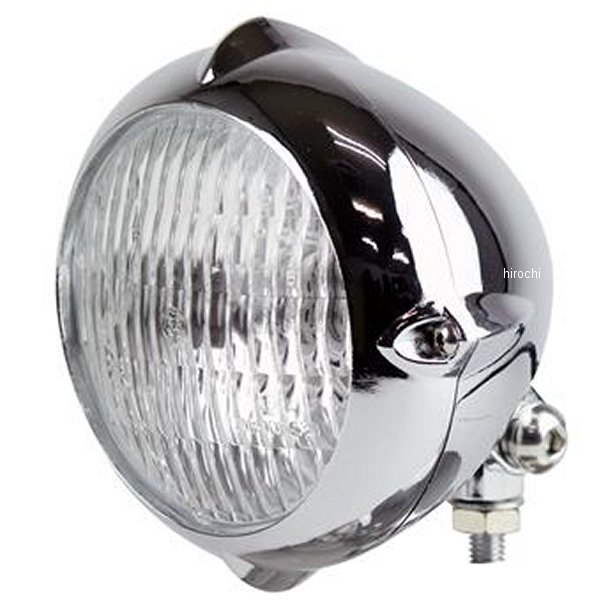 GOODS グッズ 4インチビンテージスタイルリブヘッドライト クローム H4汎用カラー:クローム材質:アルミサイズ:レンズ径:φ101.5mm ライトリム径:約126mm 幅(リブ含む):約139mm 前後長さ:約106mm 取付けボルト径:M10-1.5内容物:本体×1【仕様説明】4リブデザインのアルミキャストボディのオールド感漂うヘッドライト。小ぶりなサイズ、雰囲気あるレンズカットでチョッパーに最適。配線色 青:ロービーム 赤:ハイビーム 黒:アース