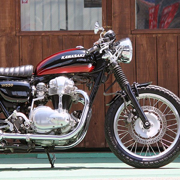 GOODS グッズ パイプワークフロントフェンダーカワサキ W800、W650、W400カラー:フェンダー:黒ゲルコート ステー:ブラック材質:フェンダー:FRP スタビ:スチールサイズ:フェンダー長さ:約410mm フェンダー幅:約104mm ステーパイプ径:φ15.9mm内容物:フェンダー×1 スタビ×1式【仕様説明】カワサキ W800、W650、W400にボルトオンのフロントフェンダー。取付位置が上下でき、ファイアストーン等ハイトの高いタイヤでも装着可能。スタビライザーを兼ねたステーによるフロント剛性アップ効果もあり。取付時はフロントホイールを外す必要有り。