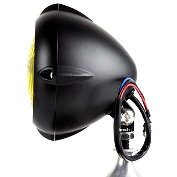 GOODS グッズ 4インチビンテージスタイルリブヘッドライト汎用カラー:ボディ:ブラック レンズ:イエロー材質:アルミサイズ:レンズ径:φ101.5mm ライトリム径:約126mm 幅(リブ含む):約139mm 前後長さ:約106mm 取付けボルト径:M10-1.5内容物:本体×1【仕様説明】4リブデザインのアルミキャストボディのオールド感漂うヘッドライト。小ぶりなサイズ、雰囲気あるレンズカットでチョッパーに最適。配線色 青:ロービーム 赤:ハイビーム 黒:アース
