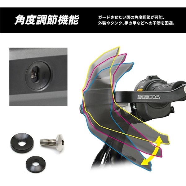 ジータ ZETA スクードプロテクターカラー:グレーZETA アーマーハンドガードシリーズに装着可能な、アドベンチャーツアラー向けのプラスチックガード。上下反転装着が可能な『フリッパブルデザイン』は、走行スタイルに合わせてスポーツモードとアドベンチャーモードが選択できる。「アドベンチャーモード」は上部で風雨を効果的に防ぎ、下部はタンクや外装との干渉を軽減。「スポーツモード」は上部の形状がスタンディングポジションを妨げず、下部で泥はねからグリップ周辺を保護し、スポーツライディングに必要なモチベーションを維持する。外装やタンク、手の甲などへの干渉を回避。※アーマーハンドガードシリーズ が別途必要です。