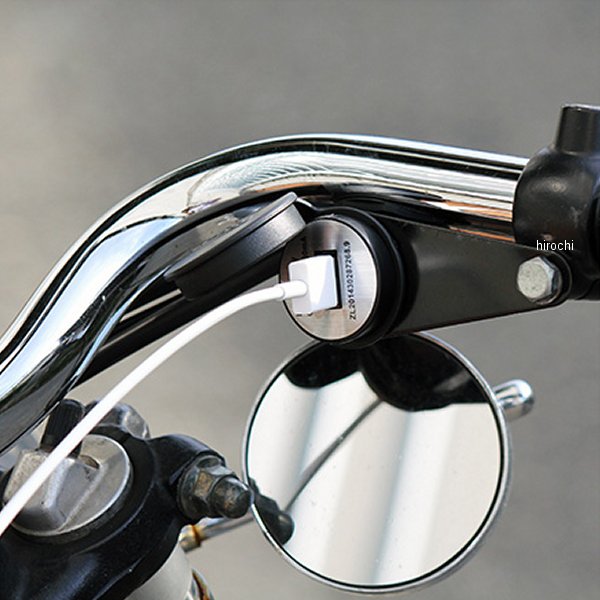 GOODS グッズ USBポート 5V汎用カラー:ブラック材質:樹脂サイズ:取付け穴径:φ8mm 本体最大径(キャップ):φ39mm 本体長さ:53mm内容物:本体、ステー×1【仕様説明】車体に取り付けるUSBポート。バッテリーや各プラス電源とマイナスとつないで使用。走行しながらのスマホの充電など通勤やツーリングに便利なアイテム。出力は5V、1000mA.