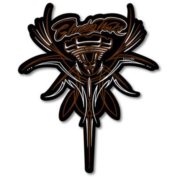 GOODS グッズ ステッカーカラー:ブラックブラウンホワイト材質:特殊耐水ラミネートサイズ:幅:91mm 高さ:110mm【仕様説明】特殊耐水ラミネート加工を施した耐候性の高いステッカー。 "GLEAMING WORKS" ハーレーのエンジンを軸にピンストライプデザインがお洒落です