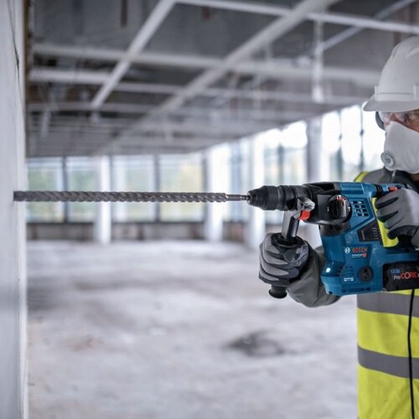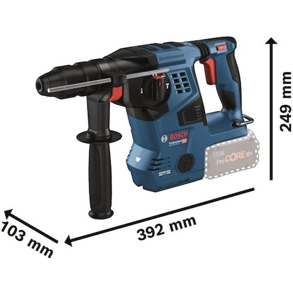 ・クイックリリースシステム採用しています。・打撃力3.3Jの余裕のパワーです。・破つり作業が可能な3モードです。・キックバック防止機能で安全に作業できます。・正転・逆転機構付です。・暗所の作業に威力を発揮LEDライトです。・吊り下げのための、収納可能なフック装備付です。・吸じんシステムGDE18V-16(別売)に対応しています。・スマホと繋げて機能設定が可能なコネクト対応(別売コネクティビティチップGCY42必要)・コンクリートの穴あけ、破つり作業に。・金属、木材への穴あけ作業に。・無負荷回転数(min[[の-1乗]]):0~950・打撃数(min[[の-1乗]]):0~4220・本体寸法(mm):249×392×103・バッテリー電圧(V):18・色:ブルー・穴あけ能力(mm)鉄工:13・穴あけ能力(mm)コンクリート:28・穴あけ能力(mm)木工:30・ドリル径(mm):SDSプラス・SDSプラスシャンク・打撃力3.3J・最小スミヨセ寸法:35mm・振動3軸合成値:ハンマードリル時14.0m/s[[の2乗]]、破つり時9.0m/s[[の2乗]]・ポリアミド樹脂(PA)・サイドハンドル・深さゲージ・クイックリリースチャック・電池パック・充電器は別売です。・生産国 ドイツ・JANコード 4053423244410・質量 3.400kg・コード:581-2284 ・品目:GBH18V28CFH