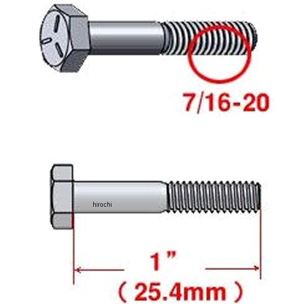 ガッツクローム HEXボルト7/16-20(インチサイズ細目)首下長さ約25.4mmスチール(ジンク)