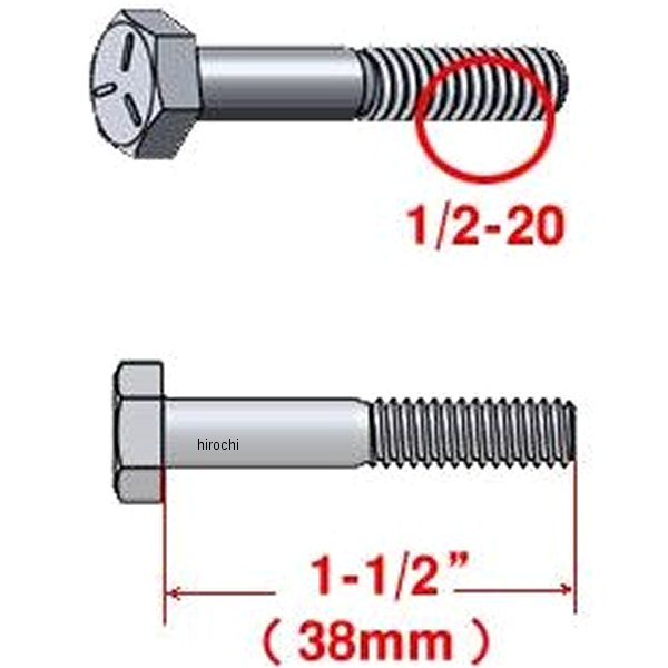 ガッツクローム HEXボルト1/2-20(インチサイズ細目)首下長さ約38mmスチール(ジンク)
