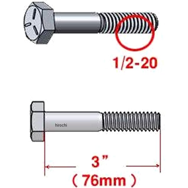 ガッツクローム HEXボルト1/2-20(インチサイズ細目)首下長さ約76.2mmスチール(ジンク)