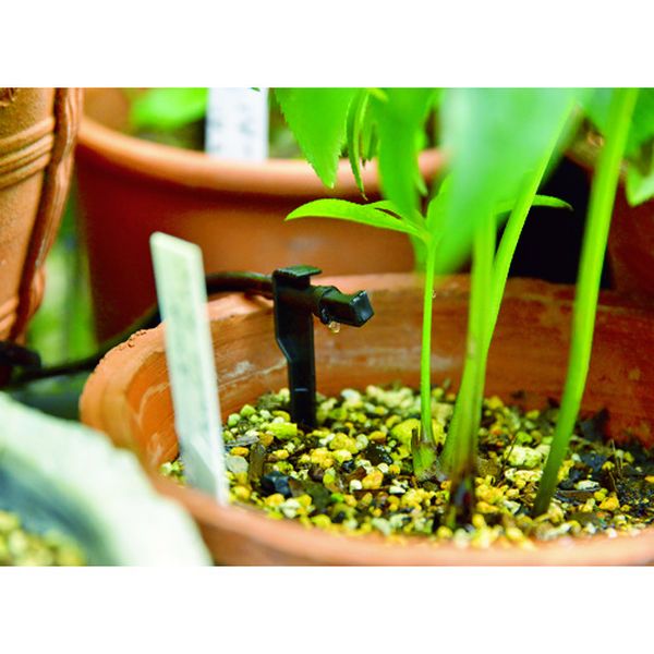 ・簡単水やりシステムの基本パーツです。・土に差して使用する小型スプリンクラーです。・鉢植え・プランターに最適です。・ポタポタと点滴で水やりをします。・散水用。・タイプ:点滴・適合ホース内径(mm):4・適合ホース内径×外径(mm):4×7・水量調節ダイヤル付・最大使用可能水圧0.4MPa・ポリプロピレン(PP)・生産国 中国・JANコード 4975373154260・質量 31g・コード:758-2617 ・品目:GKS102