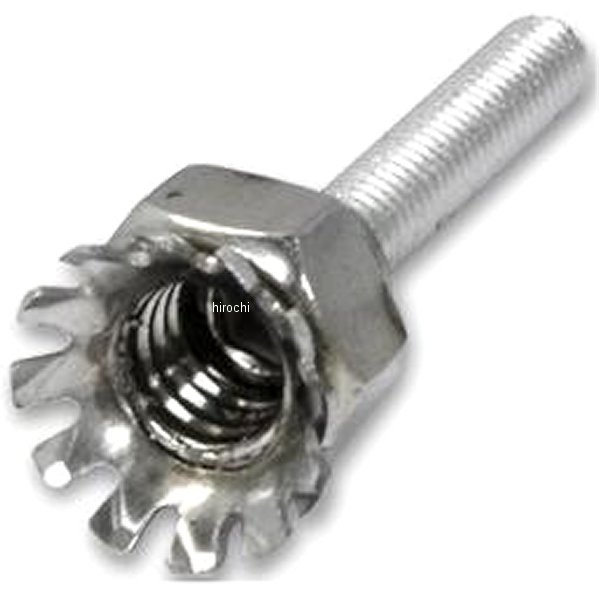 ガッツクローム インジェクターチューニングボルト08年以降 ツーリングモデル(電子スロットル)ネジサイズ:M5-P0.8、長さ:約25mm既存のネジと付け替えるだけでスムースな加速、燃費の向上などの効果が得られるという一見不思議なパーツですが、役割としては静電気の除去です。ネジ先端のトゲトゲが静電気を放電することで、インジェクターからエンジンまでの混合気をスムースに流れるため燃焼効率が上がるそうです。キャブレター車にも有効ですが、インジェクション車の方がより体感は強い傾向にあります。車種により取付け位置でも効果が変わるので色々な方法でお試しください。締め付けは外側のナットでは無くヘックスレンチを使用してネジ本体を締め付けてご使用ください。取付けは左側ホーンブラケットの内側のネジと差し替えてください。※1個売りです。