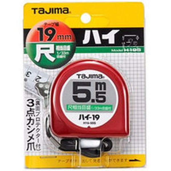 ・尺相当目盛付です。・スピーディーな測定ができる、スタンダードタイプです。・一般測定用コンベックス。・テープ長さ(m):5.5・テープ幅(mm):19・水平保持(m):1.8・目盛仕様:尺相当目盛・爪仕様:ステンレス爪・0点補正移動爪:○・455ピッチ表示:○・ショックアブソーバー:あり・ロック仕様・移動爪・フリータイプ・片面目盛・455mmピッチ表示:あり(テープ幅16mm以上)・減速ボタン:なし・ショックアブソーバー:あり・ベルトフック付・テープ:スチール・生産国 中国・JANコード 4975364012326・質量 225g・コード:374-9282 ・品目:H1955SBL