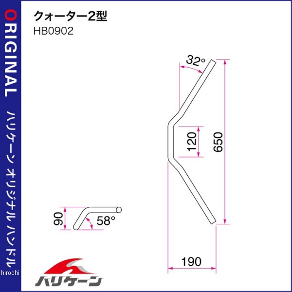 ハリケーン クォーター2型 ハンドルセット98年-00年 ヤマハ XJR400Rカラー:クロームメッキ付属品:クラッチケーブル別途、サイドキャップ(内径φ18mm)、ハンドルの穴開け加工が必要です。