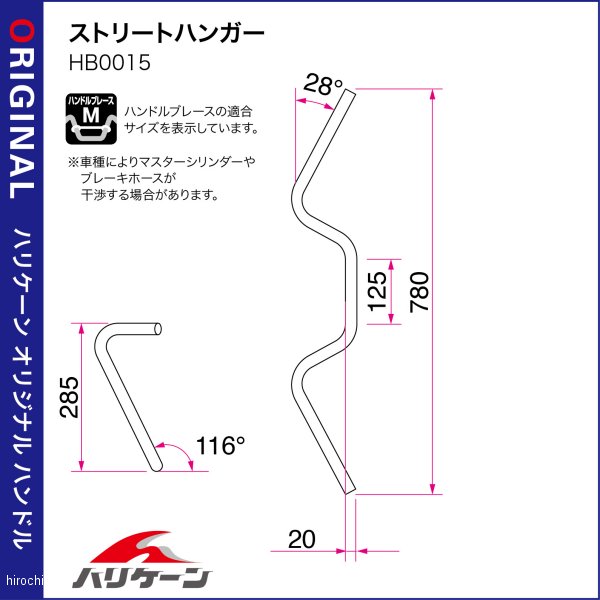 ハリケーン ストリートハンガー ハンドルセット91年-96年 カワサキ バリオスサイズ:外径φ22.2mm 内径φ18mmカラー:クロームメッキ【セット内容】・ストリートハンガーハンドル(スイッチ穴加工なし)・スロットルケーブル・クラッチケーブル・チョークケーブル・ブレーキホース※ハンドルスイッチ穴開け加工、ハーネスの延長が必要です。※サイドキャップが別途必要な場合があります。【特徴】ハンドルと必要なケーブル&ホースのセットです。引張強さに優れたSTKM13Aスチール材を使用しJMCA安全基準クリア。耐食性に優れるトリプルニッケルを採用したピュアクロームメッキ。※品質向上のため、ハンドルバーの形状および仕様は予告無しに変更する場合があります。※一般公道使用の場合250cc超のモデルで車検証記載の車体寸法より高さ±40mm 幅±20mmを超える変更を行った場合は改造申請が必要になります。(250cc以下のモデルの場合は改造申請の必要はありません。)