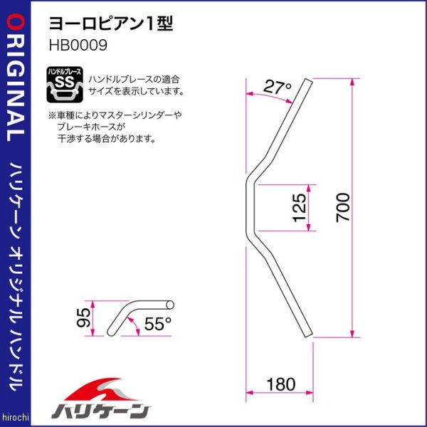 ハリケーン ヨーロピアン1型 ハンドルセット13年-17年 カワサキ Z250ABS不可カラー:ブラック付属品:スロットルケーブル、クラッチケーブル、ブレーキホース別途、ハーネスの延長、サイドキャップ(内径φ18mm)、ハンドルの穴開け加工が必要です。