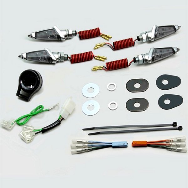 ハリケーン LEDダガーウインカーキット13年-15年 ホンダ グロム(JC61-1299999まで)ウインカー本体:アルミ製カラー:クロームメッキ取付ステー:スチール製取付ボルト:M10×P1.25レンズ色:スモーク消費電力:12V2W前後セットノーマル位置に取付ポジションランプは使用できませんカラー:付属品:ICリレー、ジョイントハーネス