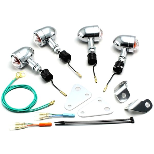 ハリケーン ミニブレットウインカー08年-16年 ホンダ CB223Sウインカーサイズ:外径φ37mm材質:アルミ製クロームメッキ【セット内容】フロント/リア取付ステー、カプラ接続対応ジョイントハーネス付き取付ボルト(M10×P1.25)クリアレンズにオレンジ球組込み(12V15W)×4個※シングル球のみ※リア側は付属ステーに交換して取り付け。※ハリケーン製ウインカーは保安基準による正面から見た灯光部の面積7cm2以上の規定をクリアしています。【特徴】ミニブレットウィンカーはレンズの止めビスがないシンプルな形状です。