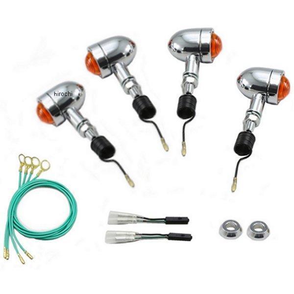 ミニブレットウインカーキットです。07年-13年 カワサキ エストレヤカラー:オレンジレンズサイズ:φ37mm入数:組込球12V15W×4個専用ジョイントハーネス付画像1はカラー:オレンジレンズ、画像2はカラー:クリアレンズです。フロント・リア4個セットでノーマル位置に取付。専用ハーネス付で接続簡単上記セパレートハンドル装着車はウインカー取付バンド(2ヶ入 HA5587 ¥1,500)を使用してフロントフォークに取付けています。