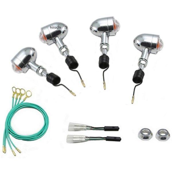 ミニブレットウインカーキットです。07年-13年 カワサキ エストレヤカラー:クリアレンズサイズ:φ37mm入数:組込球12V15W×4個専用ジョイントハーネス付画像1はカラー:オレンジレンズ、画像2はカラー:クリアレンズです。フロント・リア4個セットでノーマル位置に取付。専用ハーネス付で接続簡単上記セパレートハンドル装着車はウインカー取付バンド(2ヶ入 HA5587 ¥1,500)を使用してフロントフォークに取付けています。