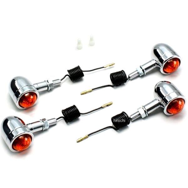 ハリケーン ミニブレットウインカー88年-96年 ヤマハ ビラーゴ250フロント:ノーマルステー取り付けリア:ノーマル位置取り付けウインカーサイズ:外径φ37mm材質:アルミ製クロームメッキ【セット内容】オレンジレンズにクリア球組込み(12V23W)×4個※シングル球のみ※ヘッドライトkitと同時装着の場合は取付バンドが必要。※ハリケーン製ウインカーは保安基準による正面から見た灯光部の面積7cm2以上の規定をクリアしています。【特徴】ミニブレットウィンカーはレンズの止めビスがないシンプルな形状です。
