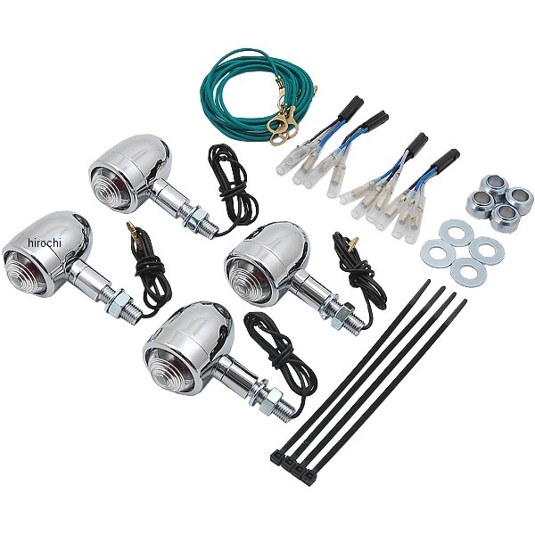 ミニブレットウインカーキットです。15年-17年 ヤマハ ボルト Cスペックサイズ:φ37mmカラー:クリアレンズアルミ製クロームメッキ専用ハーネス付で接続簡単組み込みバルブは12V/23Wフロント・リア4ヶセットでノーマル位置に取付