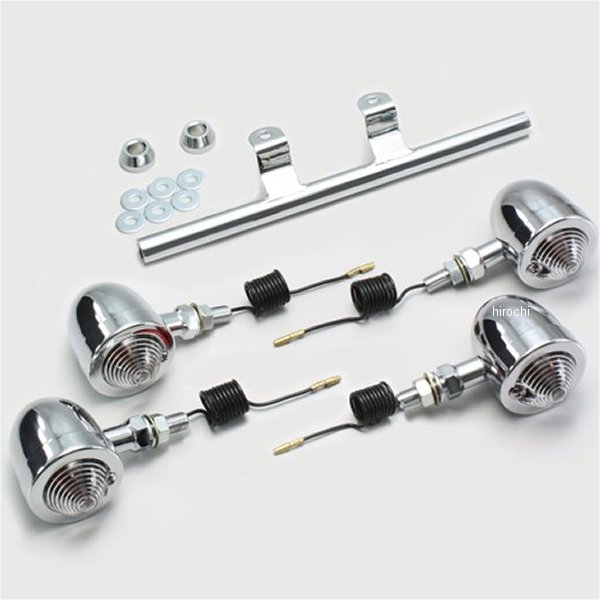ハリケーン ブレットウインカーキット96年-08年 ヤマハ ドラッグスター40010年-17年 ヤマハ ドラッグスター400フロント:ステムマウント取り付けリア:主にノーマル位置取り付けウインカーサイズ:φ50mm材質:スチール製クロームメッキ【セット内容】クリアレンズにオレンジ球組込み(12V15W) 計4個取付ボルト M10×P1.25※シングル球※ハリケーン製ウインカーは保安基準による正面から見た灯光部の面積7cm2以上の規定をクリアしています。