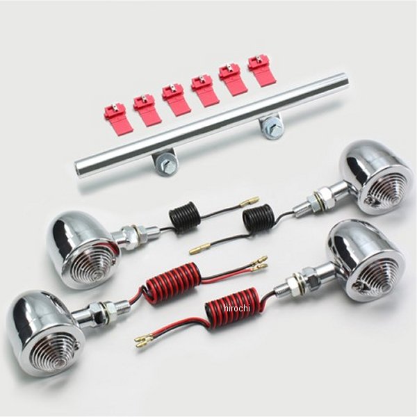ハリケーン ブレットウインカーキット96年 スズキ デスペラード96年-98年 スズキ デスペラード80096年-98年 スズキ デスペラード800X96年 スズキ デスペラードXフロント:フレームマウント取り付けリア:主にノーマル位置取り付けウインカーサイズ:φ50mm材質:スチール製クロームメッキ【セット内容】クリアレンズにオレンジ球組込み(フロント 12V23W/8W/リア 12V23W) 計4個取付ボルト M10×P1.25※シングル球/ダブル球※ハリケーン製ウインカーは保安基準による正面から見た灯光部の面積7cm2以上の規定をクリアしています。