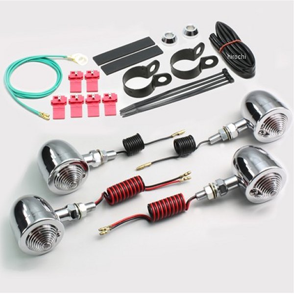 ハリケーン ブレットウインカーキット01年-16年 スズキ イントルーダークラシック01年-06年 スズキ イントルーダークラシック80005年-16年 スズキ ブルバード05年-06年 スズキ ブルバード800フロント:フレームのネジ穴取り付けリア:スイングアーム又はノーマル位置取り付けウインカーサイズ:φ50mm材質:スチール製クロームメッキ【セット内容】クリアレンズにオレンジ球組込み(フロント 12V23W/8W/リア 12V23W) 計4個取付ボルト M10×P1.25※シングル球/ダブル球※ハリケーン製ウインカーは保安基準による正面から見た灯光部の面積7cm2以上の規定をクリアしています。