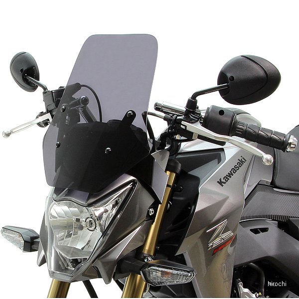 ハリケーン スクリーン16年-21年 カワサキ Z125Proカラー:ブラックスモーク角度が立ち気味の個性的なデザインライトバイザーの固定位置を利用してボルトオンで簡単に取付アルミ製ブラックアルマイトの専用ステー付き