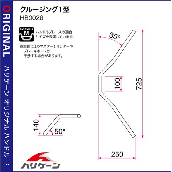 ハリケーン ハンドルクルージング1型スチール製外径φ22.2mm 内径φ18mmJMCA安全基準値クリアトリプルニッケル ピュアクロームメッキ仕上げブレースMサイズが適合刻印によって装着後もハンドルの特定が可能