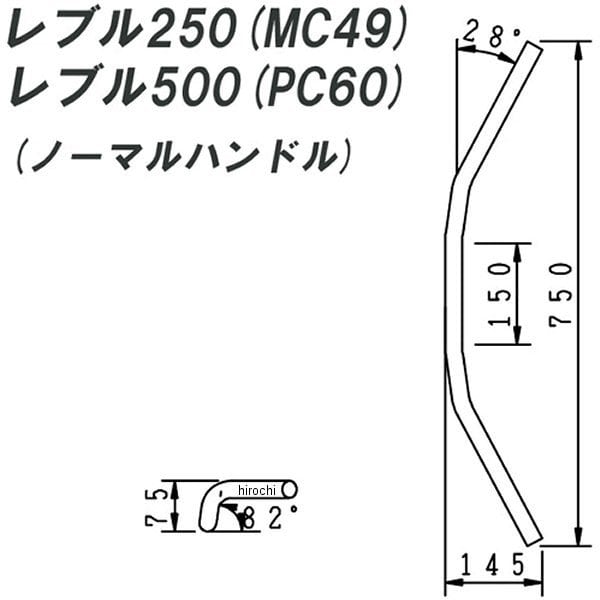 ハリケーン レブル専用ハンドル17年-23年 ホンダ レブル500(PC60)、レブル250(MC49)/S ポジション 30mmUP 50mmBACK(ノーマル比)外径φ25.4mm/内径φ20.8mmハンドルスイッチ穴加工済JMCA基準値クリアスチール製ブラッククローム+アクリル塗装二重防錆処理仕上げ幅を少し狭く、絞り角を増やしてグリップ位置が近くなる様に設定。※構造変更は不要です。※ケーブル、ホース類はノーマルのまま取付可能です。ABS車両はブレーキホースをガイドから取外す必要があります。