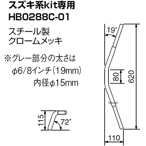 ハリケーン ハンドル00年-05年 スズキ ZZ(ジーツー)98年-04年 スズキ アドレス11090年-97年 スズキ アドレスV91年-05年 スズキ アドレスV10092年-97年 スズキ セピア93年-95年 スズキ セピアRS93年-99年 スズキ セピアZZ96年-98年 スズキ レッツ96年-02年 スズキ レッツ296年 スズキ レッツ2 G97年-98年 スズキ レッツ2 Sスズキ専用ハンドルスチール製外径φ22.2mm/φ19.1mm 内径φ15mmJMCA安全基準値クリアバーハンドルキット付属スイッチ穴加工済みトリプルニッケル ピュアクロームメッキ仕上げブレースはXSサイズが適合