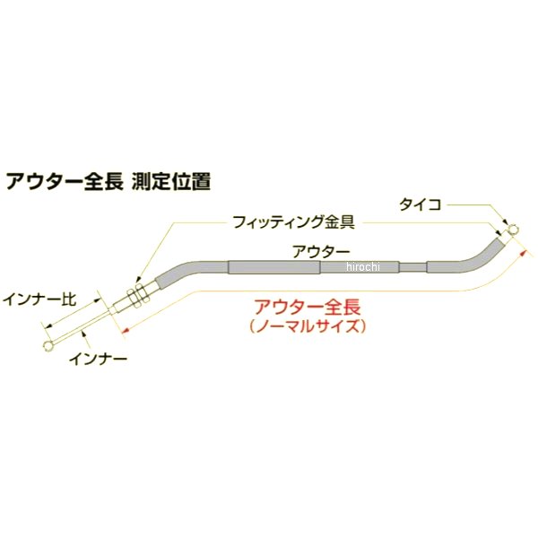 ハリケーン スロットルケーブルW17年-25年 ホンダ レブルカラー:ブラック250mmロングアウター長さ:1150/1145mm※ワイヤーオイルを定期的に注入してください。【特徴】インナーワイヤーはステンレス鋼線7×7の複合よりで、表面にスェージング加工を施し滑らかで伸びの少ない高張力ワイヤーです。またスパイラルワイヤー内側にテフロンチューブを使用していますので、摩擦係数が少なく、軽くて滑らかなレバーワークを実現しています。・メンテナンスインナーワイヤーの摩耗を少なくし、滑らかなワイヤーワークを保持するため、2、3ヶ月に一度は定期的に潤滑オイルを注入してください。・注意鋭角に曲がるような取付や取り廻しは、レバー操作を重くするだけではなく、ワイヤー破断の原因になりますのでご注意ください。取付後はハンドルを左右にきってハンドルストッパーやフレームに挟みつける部分がないか確認して下さい。