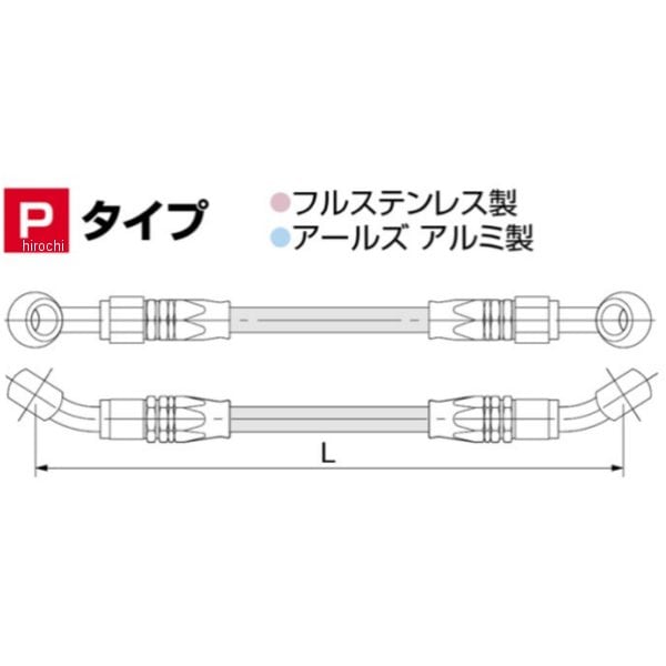 ハリケーン ブレーキホース SURE SYSTEM LINE長さ:235cmフルステンレス製Pタイプブレーキホース用車検対応品付属品:ガスケット×2、タイラップ1本売り【特徴】耐蝕性に優れたステンレス素材からの美しい削り出し。ホース部分はテフロンチューブをステンレスメッシュで補強し、PCVクリアコーティングを処した低膨張率ブレーキホースで、鋭く、しかも繊細なブレーキタッチを実現。信頼性の高い確実な制動力がライディングの幅を広げ、安全性を一段と向上させます。フィッティングとステンレスメッシュホースの接合部は信頼性の高いスェージング式カシメタイプを採用。厳重な耐圧テストによるオイル漏れ検査をクリアした車検対応品で、安心してご使用いただけます。バンジョーは上下共にアジャスタブルフィッティング式で、ハンドルバーの交換に伴うネジリ角度の変更にも自由に対応できます。